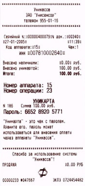 7. Сдачу вы можете получить на Уникарту, с которой возможно оплачивать в терминалах Уникасса любые товары или услуги. |