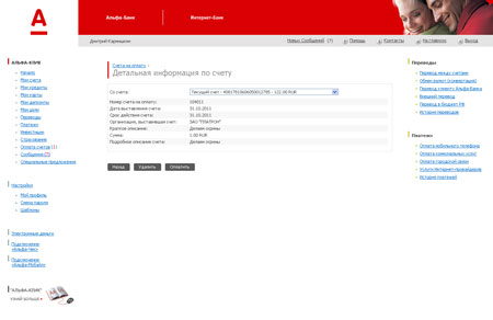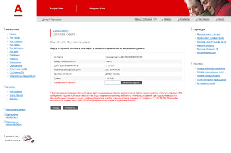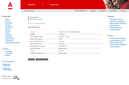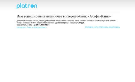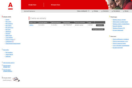 1. После выставления счета для оплаты в Интернет-магазине вы будете переадресованы на сайт Альфа-Клик. |